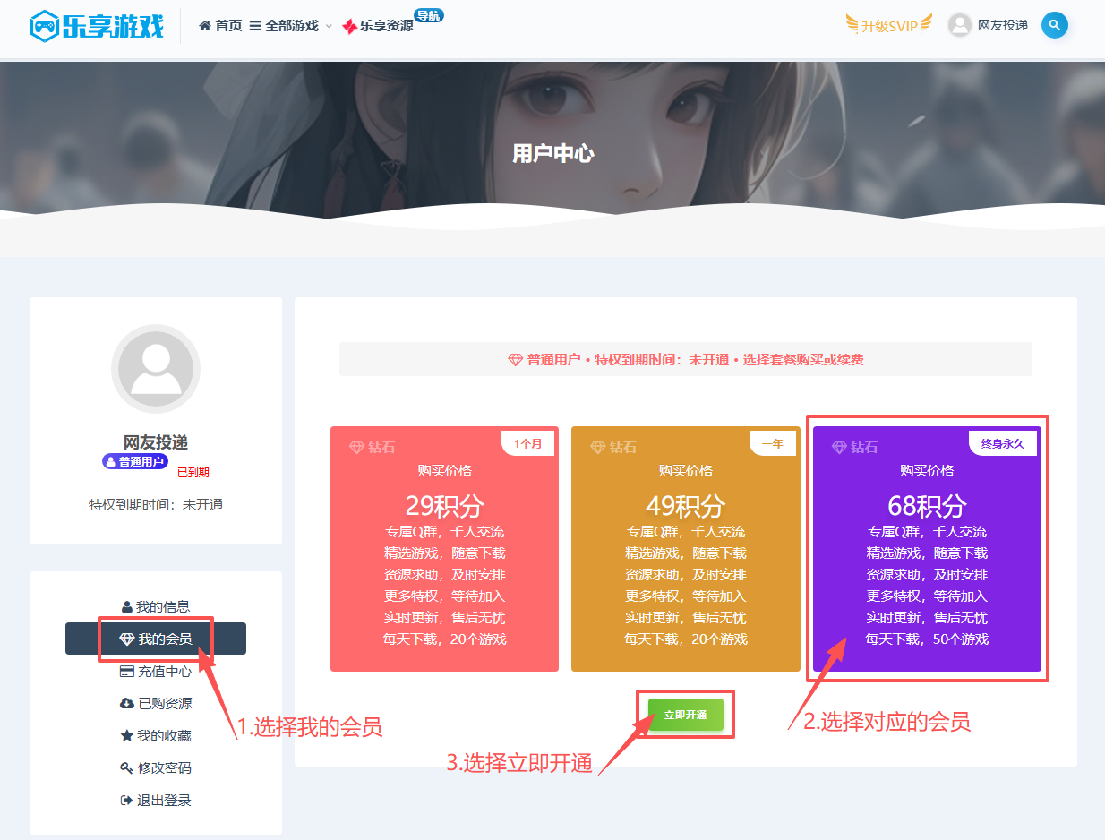 乐享游戏永久会员兑换卡密,购买后到对应的网站使用卡密充值兑换永久会员即可!商品